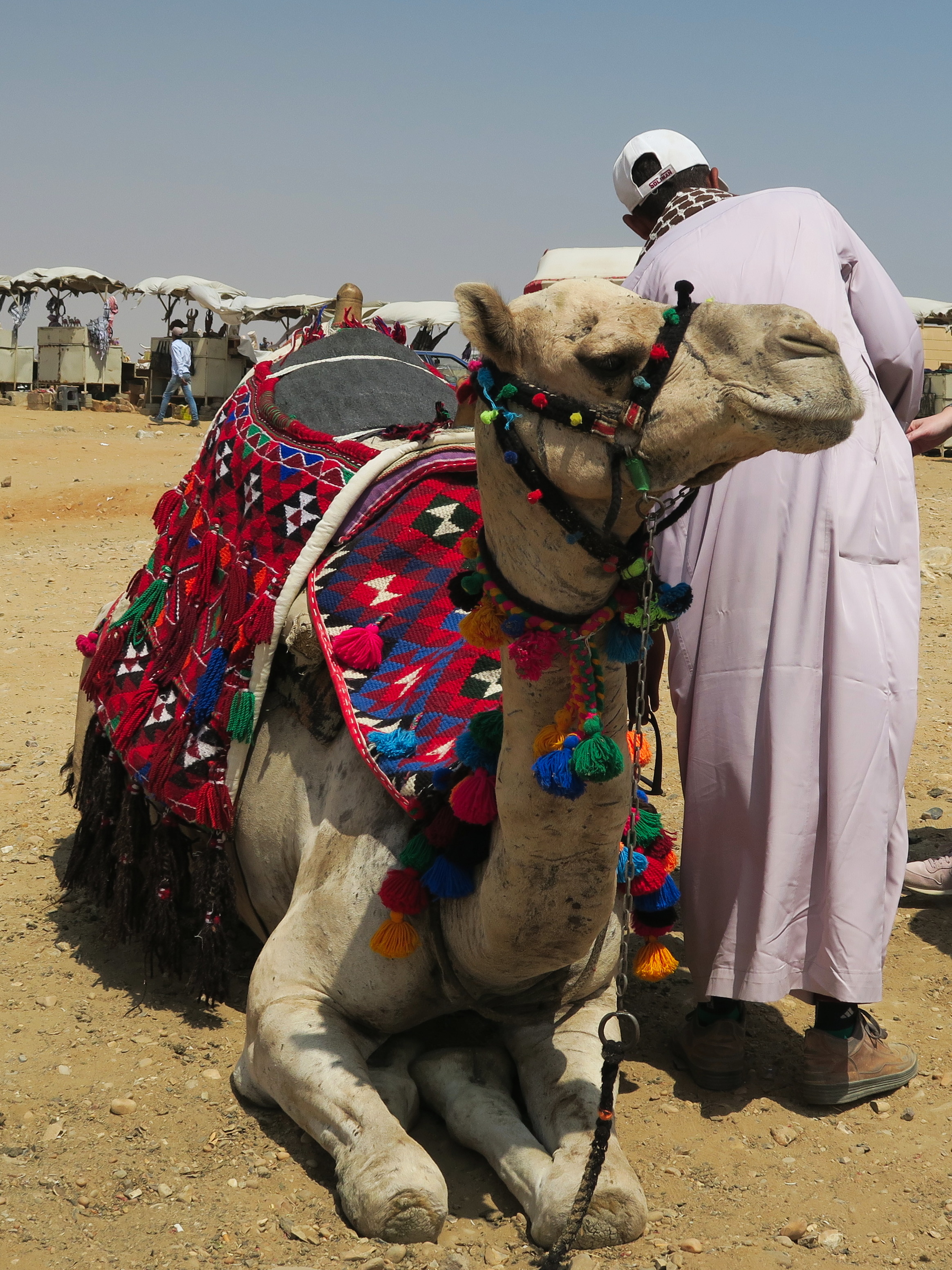 기자 대피라미드 단지에서 피라미드를 배경으로 낙타와 말을 타거나 수레를 타는 것은 신나는 경험이다. 많은 이집트 가이드들이 낙타와 말을 끌고 다니면서 관광객들을 부추긴다.