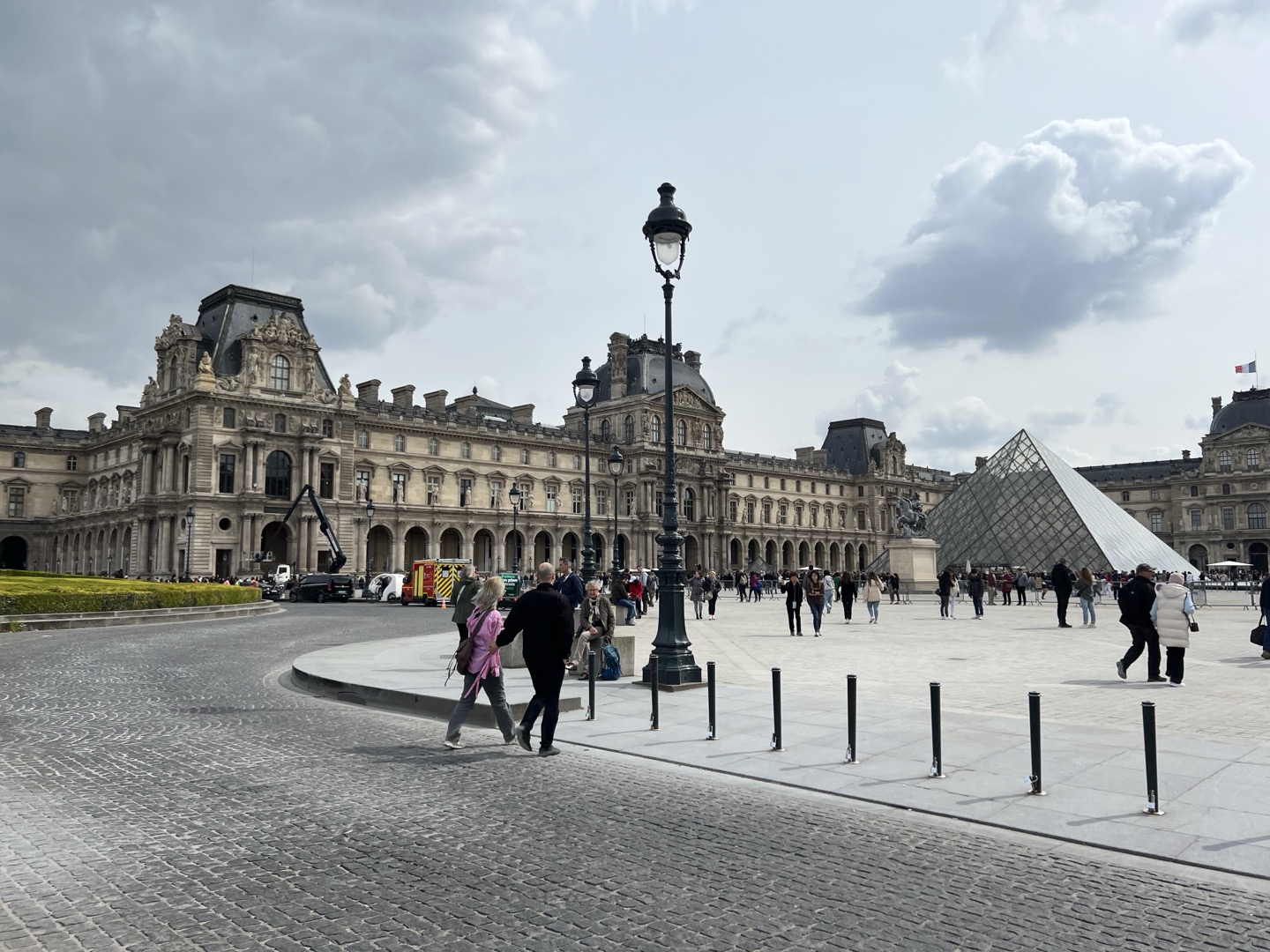 루브르 박물관 안으로 들어가니 유리 피라미드가 보였다. 프랑스어로 뮈제 뒤 루브르, 그레 루브르, 또는 그냥 루브르라고도 불린다고 한다. 건물색과 이질적인 느낌을 주는 이 유리 피라미드가 왜 루브르에 있는지 의아했다. 이 피라미드는 근대에 건설된 것으로 박물관 건물과 어울리지 않는다는 부정적 평가를 받았으나 지금은 루브르를 대표하는 조형물로 인정받고 있다.