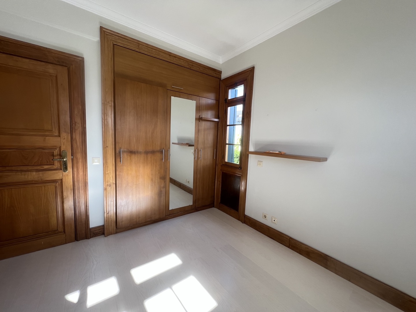 사실 기존에 설치되어 있었던 브라운 색상의 카페트는 전체 침실 분위기와 잘 조화된 디자인이었어요. 기침 알레르기 증세로 오랫동안 고생했던 탓에 고요하고 편안한 휴식과 안락함을 줄 수 있는 '순수한 자연'을 디자인 컨셉으로 설정하였답니다. 왼쪽 드레스룸으로 통하는 문은 거울로 되어 있었고, 방문, 창문틀, 선반, 걸레받이 모두 같은 갈색 원목으로 짜여져 있어서 일체감을 주고 있었습니다. 다만 비슷하게 보일수도 있겠지만 붙박이 옷장의 원목 재질이 다른 나무 프레임보다 퀄러티가 조금 낮아요.