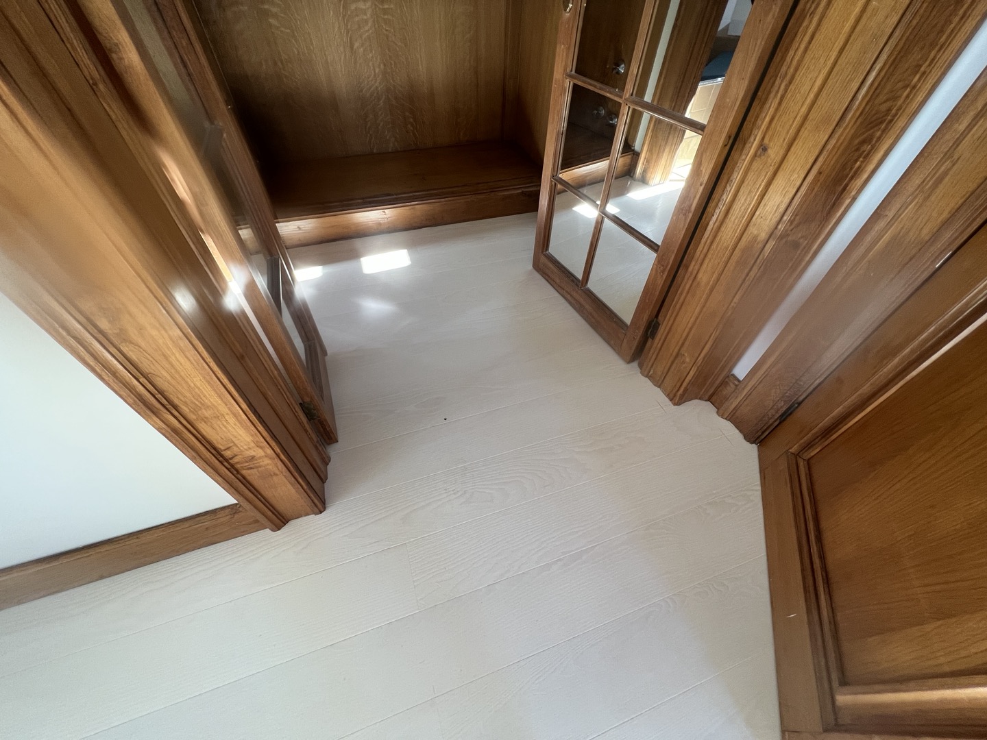 그럼에도 포기하지 않고 카페트가 아닌 원목마루로 밀어부쳤어요. 원목마루 30년 이상 경력의 특별 기술자를 섭외하고 일부 바닥을 파는 과정에서 화장실로 연결된 수도 파이프가 터지는 사고가 발생하는 우여곡절이 있었어요.