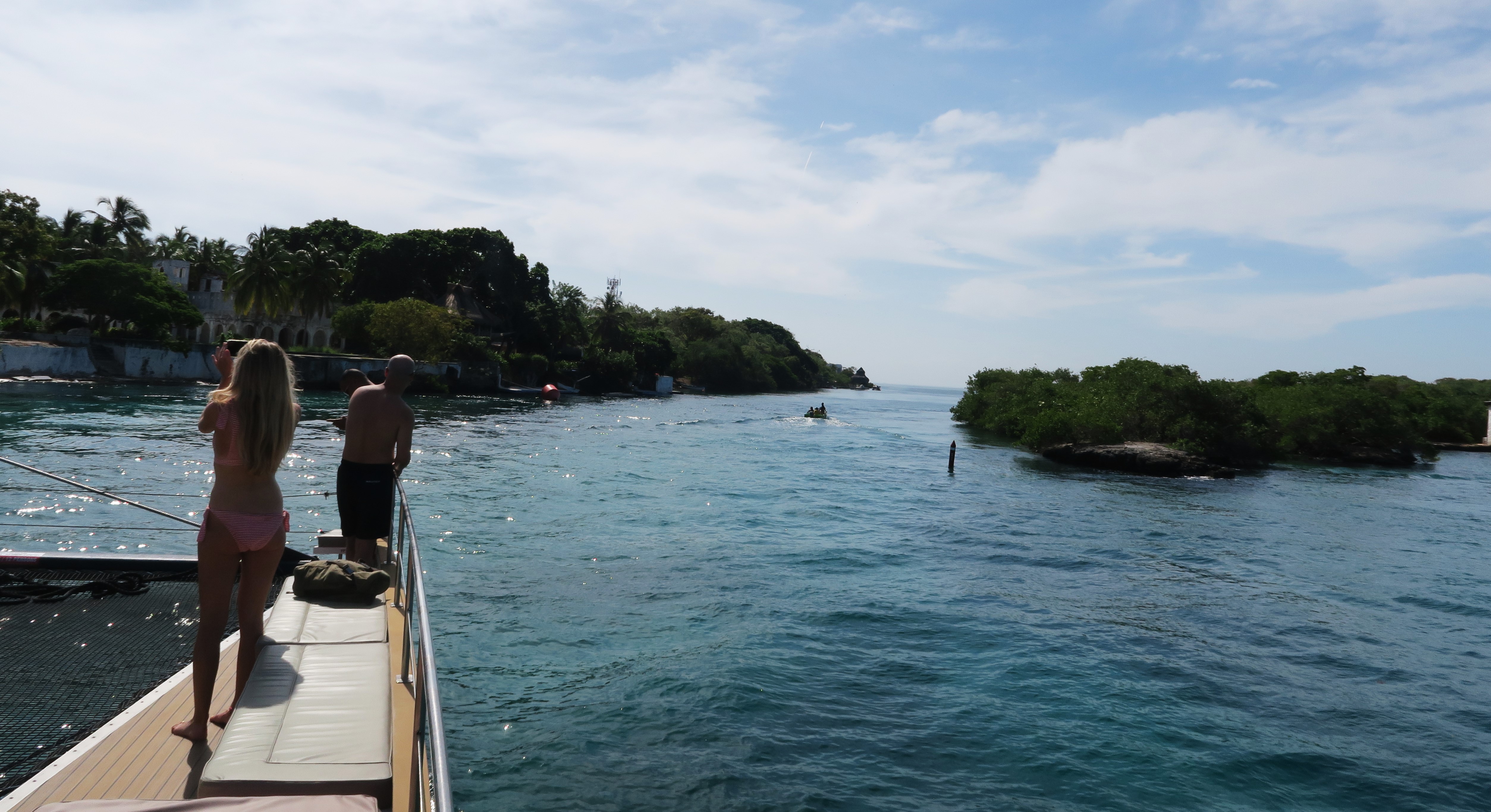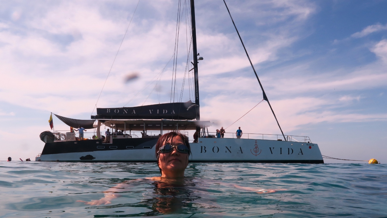 카르타헤나에서 출항한 쌍동선(Catamaran)을 타고 로사리오 섬이 보이는 곳까지 들어오니 배가 멈추면서 수영을 즐기라는 안내 방송이 나온다. 거대한 에메랄드 빛 속에 둘러쌓인 듯한 아름다운 바다색은 나를 유혹하지만 머릿속을 스치는건 '12월의 바다에서 수영이라니...' 머뭇거리고 있는데 사람들이 하나 둘씩 바다 속으로 뛰어들더니 멀리 수영을 시작한다.