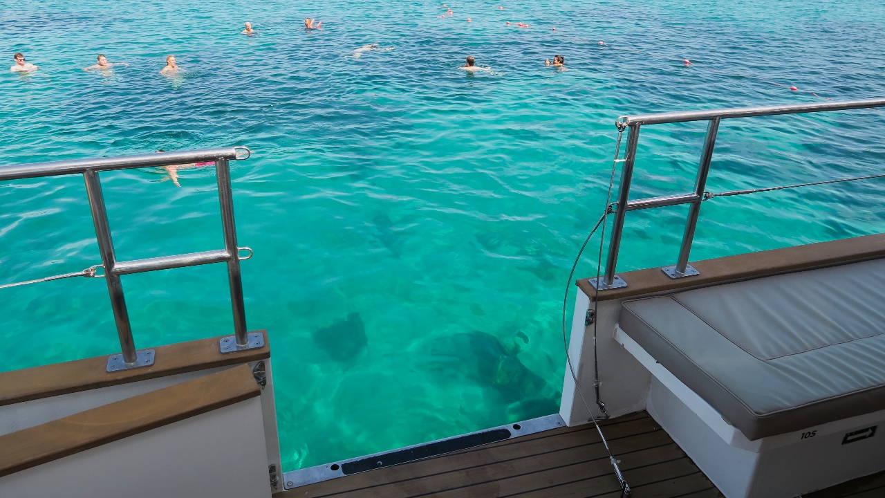 내가 타고 온 배, '보나 비다(Bona Vida)'에서 내려다 보니 투명한 그린 빛이 빛나는 물인데 그래서 바다라기 보다는 빛나는 보석같았다. 그래서 결국 나도 점프를 했다. 배에 남아 있어야 할 선원들을 제외하고는 아마도 내가 가장 마지막으로 바다에 뛰어든거 같다. 바닷물의 소금 농도가 그렇게 높지 않아 바다 수영보다는 조금 힘이 들었다.