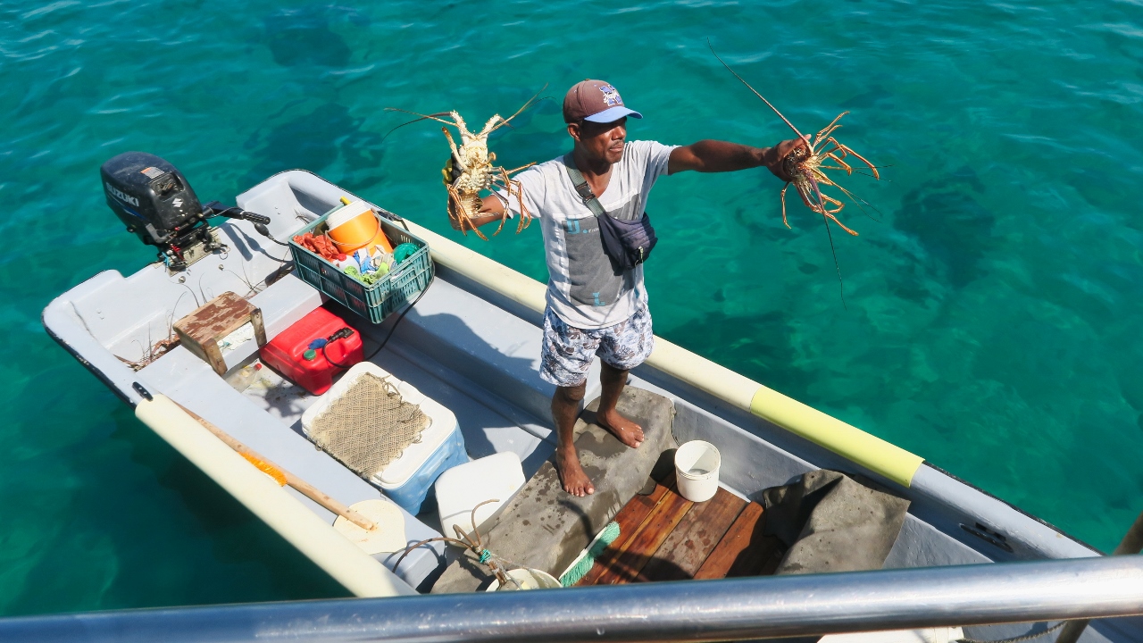 작은 배가 빠른 속력으로 우리 쌍동선쪽으로 질주해 오길래 뭔가 했더니 일종의 '바다 위를 떠돌아다니는 해산물 전용 식당'이라고 할 수 있겠다. 바다 한가운데서 파는 랍스터(Langostinas)여서 그런지 가격이 비싼데도 사람들이 너도 나도 주문을 하였다. 그래서 나도 한접시 받았는데 이것이 가격 대비 맛은 그저 그렇고 다만 이러한 상황 연출이 주는 특별한 경험이 가치가 있었다고 하겠다.