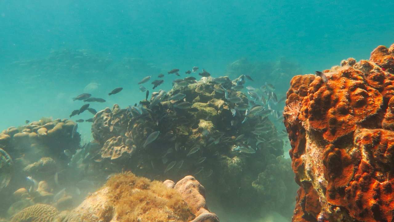 막상 바다에 뛰어 드니, 아니 이게 뭔 일일까? 물이 너무 따듯해서 마치 사우나를 하는 느낌이다. 이런 따듯한 물에 고기가 살 수가 있나? 수영을 좀 하니 물 속이 너무 덥다. 수경을 쓰고 물 속을 들여다보니 산호초 옆으로 물고기 천국이다. 이렇게 따듯한 물에서 사는 물고기도 있었다.